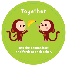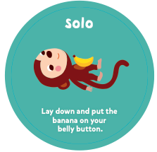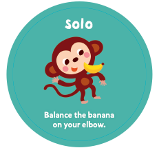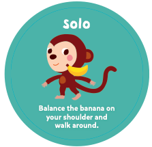 멍키 어라운드는 함께 움직이면서 놀 수 있는 보드게임입니다. 게임에서 제시하는 동작들은 24개월에서 35개월 사이 아이들에게 적합하게 설계되어 있으나 아이들마다 발달 속도는 다를 수 있으니 아이들의 발달 상황에 맞게 지시에 따르면 됩니다. 만약 만 2세 아이가 바나나를 한손으로 던질 수 없다면 두 손으로 잡고 던져도 무방합니다. 만약 게임에서 제시한 동작이 아이에게 어렵다면 부모님이 먼저 시험을 보여주고 아이가 따라할 수 있도록 도와주세요.