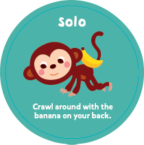 Crawl around with the banana on your back. 바나나를 등에 올리고 기어다니세요.