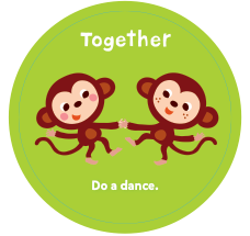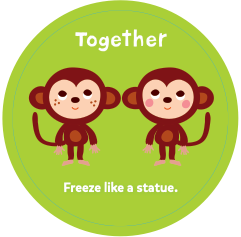 Monkey-see, monkey-do! Make up your own action and then have your partner do it too! 원숭이 움직이면, 원숭이 따라하기! 나만의 동작을 만들어내고, 상대방은 따라하세요.