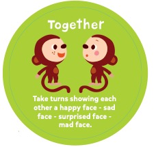 |  Take turns showing each other a happy face - sad face - surprised face - mad face. 한 명씩 차례대로 표정을 지으세요. 행복한 표정 - 슬픈 표정 - 깜짝 놀란 표정 - 화난 표정.