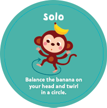 |  Balance the banana on your head and twirl in a circle. 바나나를 머리에 올리고 빙글빙글 도세요. |