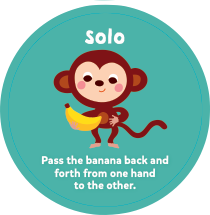 |  Pass the banana back and forth from one hand to the other. 바나나를 한 손에서 다른 손으로 넘겼다가 다시 받으세요.