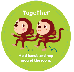 |  Hold hands and hop around the room. 손을 잡고 방 안을 콩콩 뛰어다니세요.