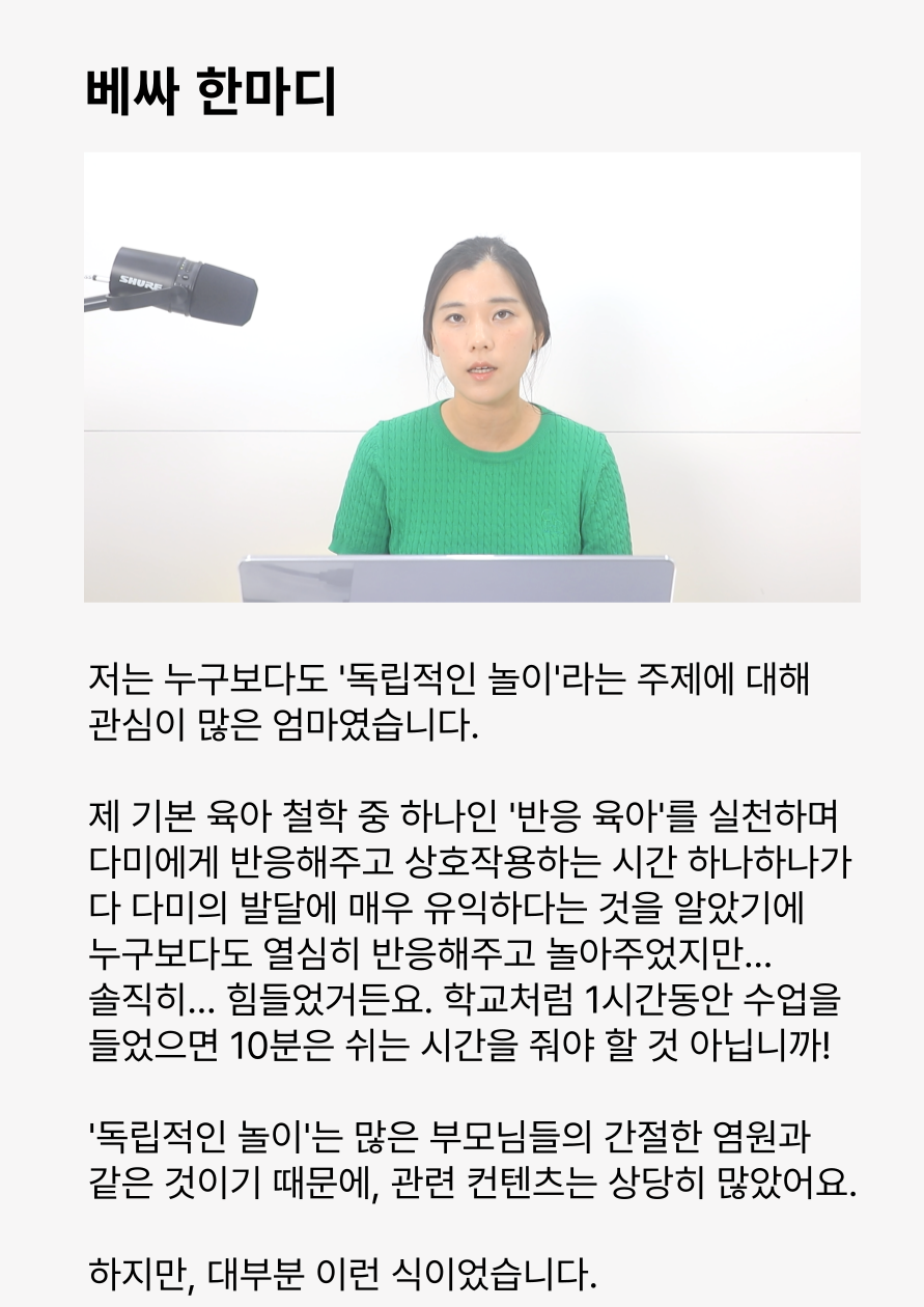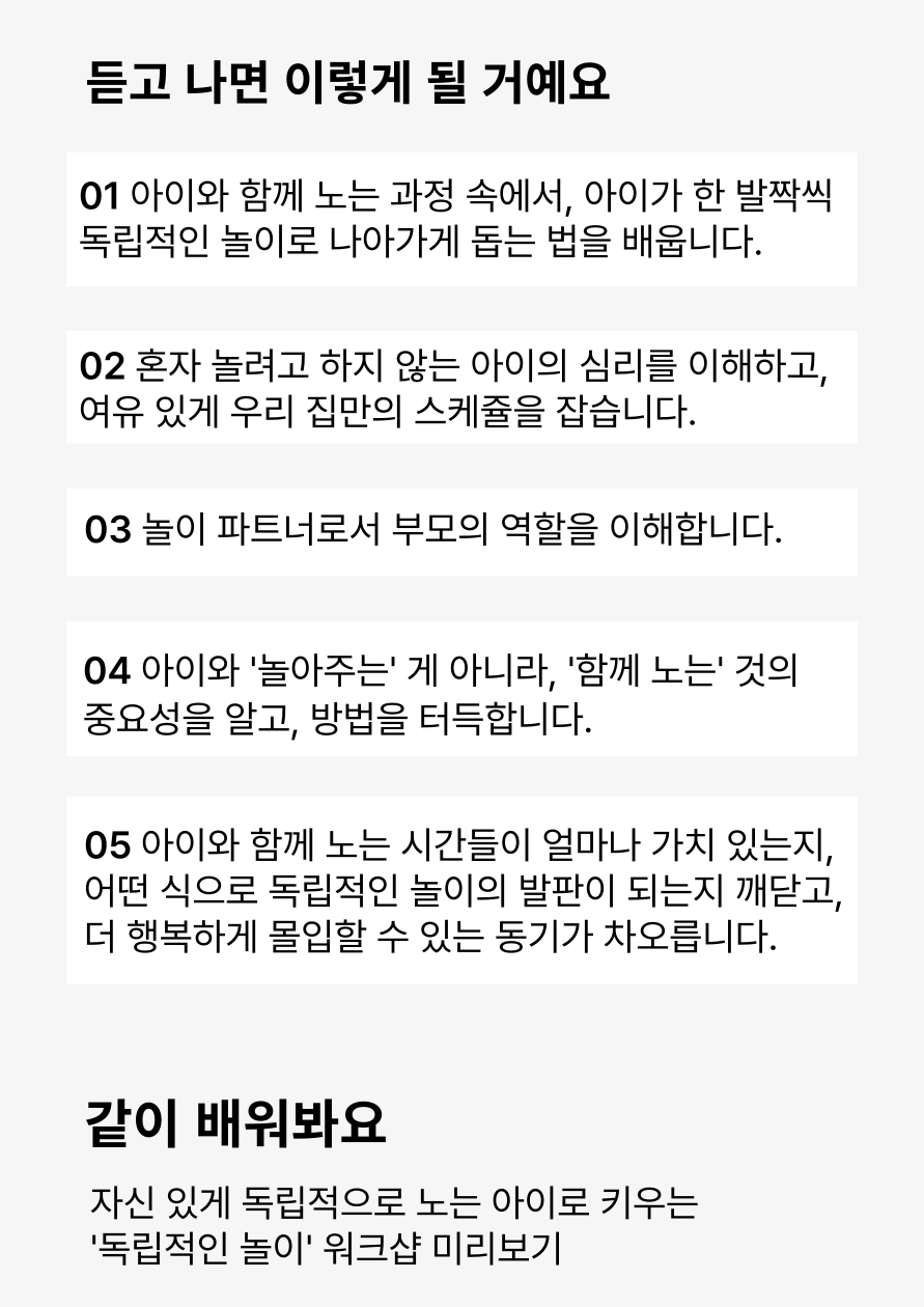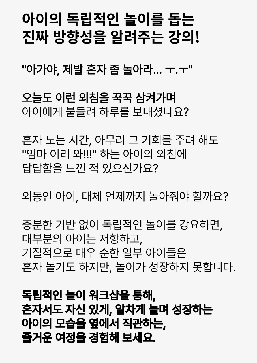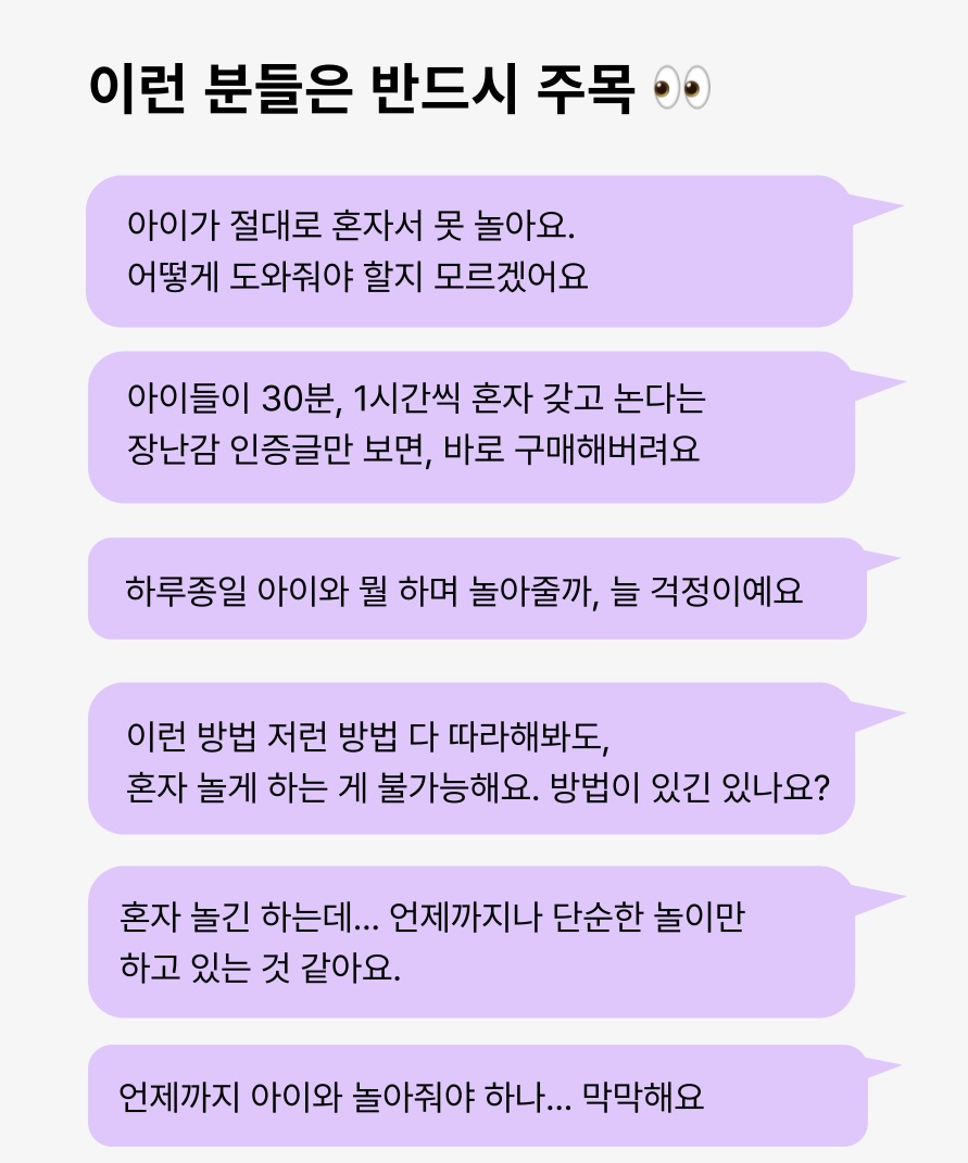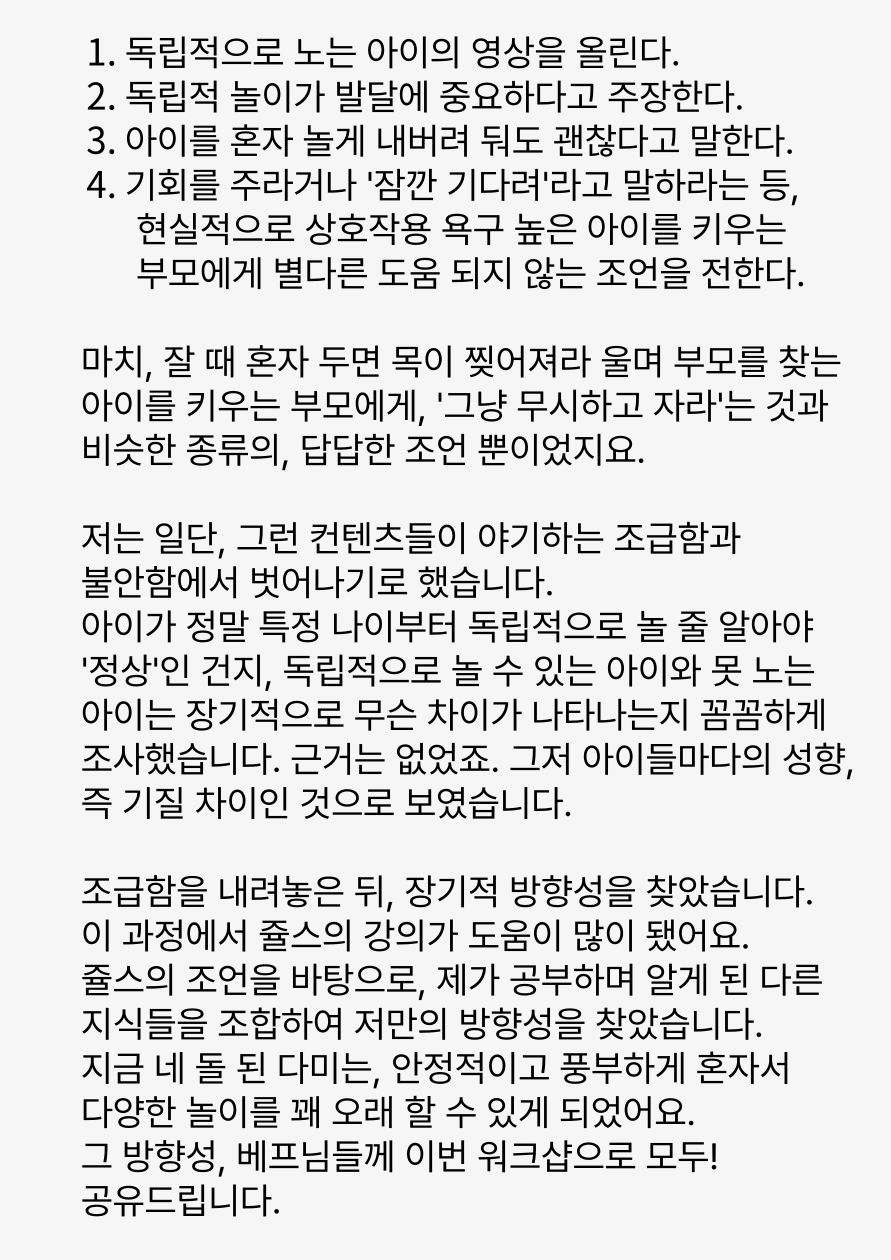 혼자 놀기도 하지만, 놀이가 성장하지 못합니다.