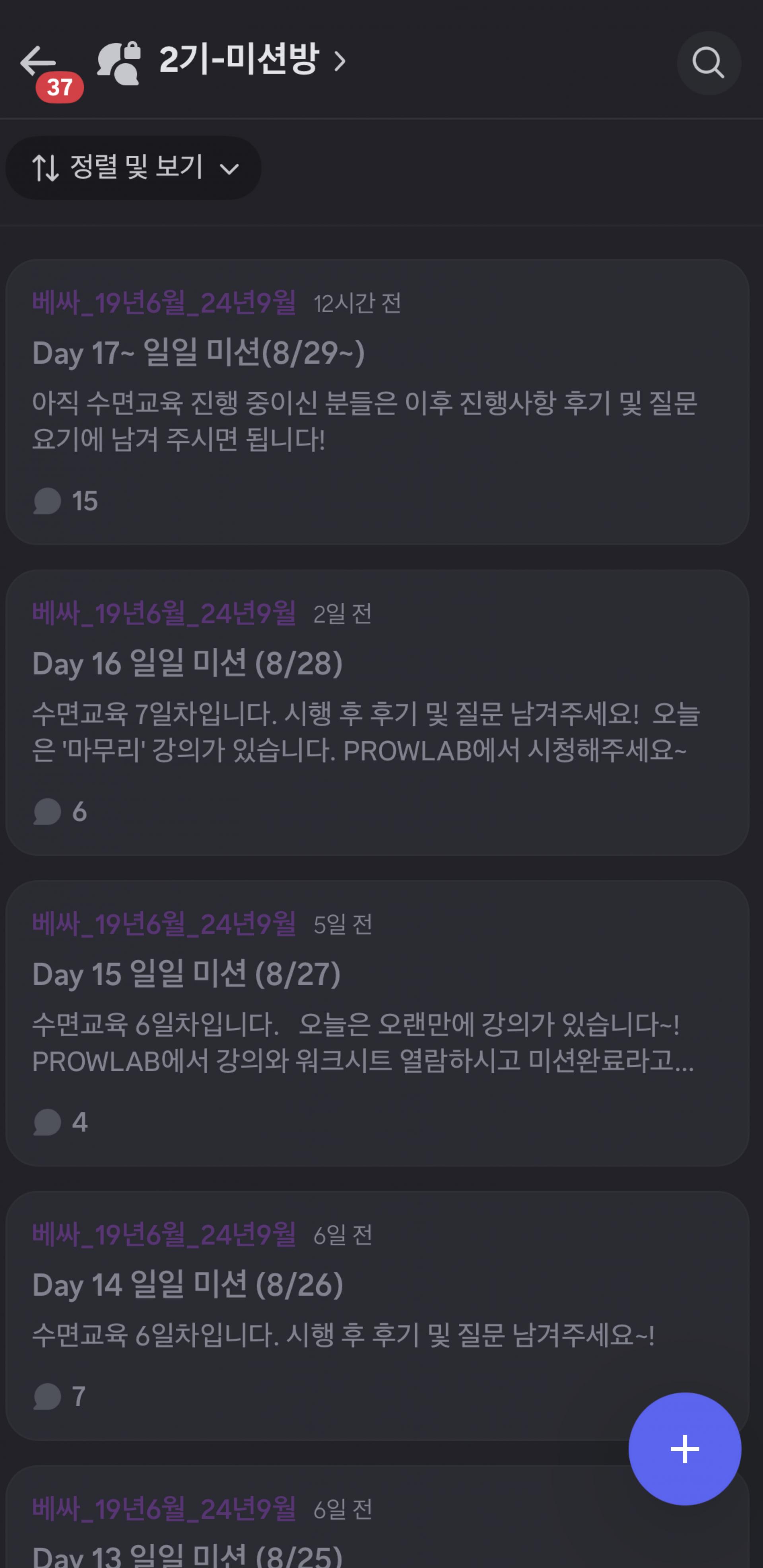 기수제 이후에도 같은 동료들과 PROW 커뮤니티에서 계속 소통 가능하며,